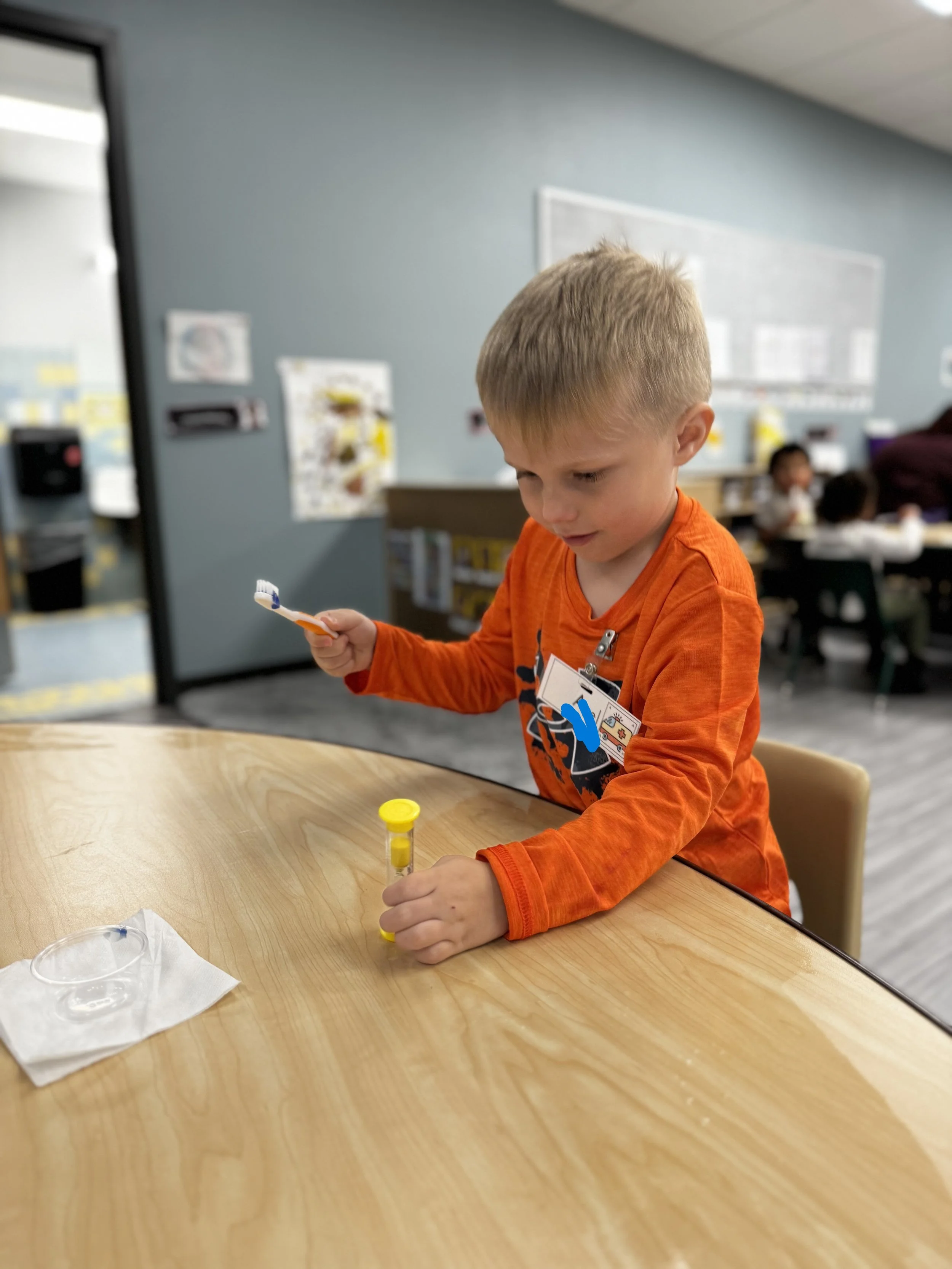 Idaho Head Start kiddo using a timer to practice tooth brushing
